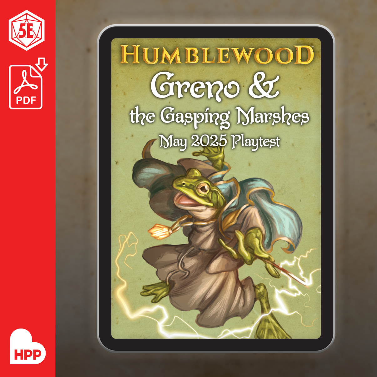Discover a new Humblewood race, the frog-like Greno and a new location: the Gasping Marshes! Includes: A new playable species and their lore Adventure hooks NPCs Magic Items ...and more!...