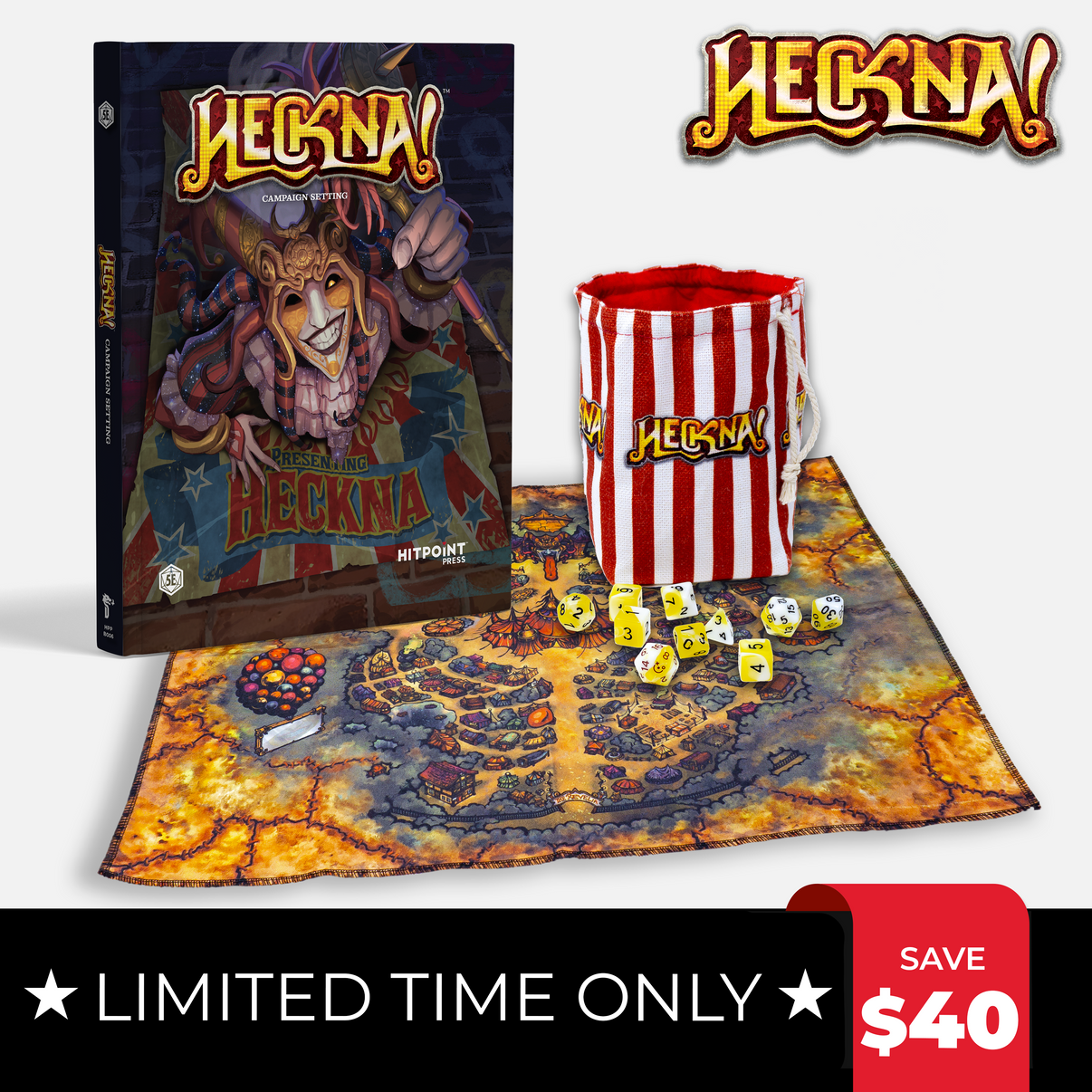 Get "rolling" with this Heckna! book & dice starter bundle! Heckna! is a 5e carnival setting and adventure story designed to take characters through levels 1 to 10. Game Masters and...