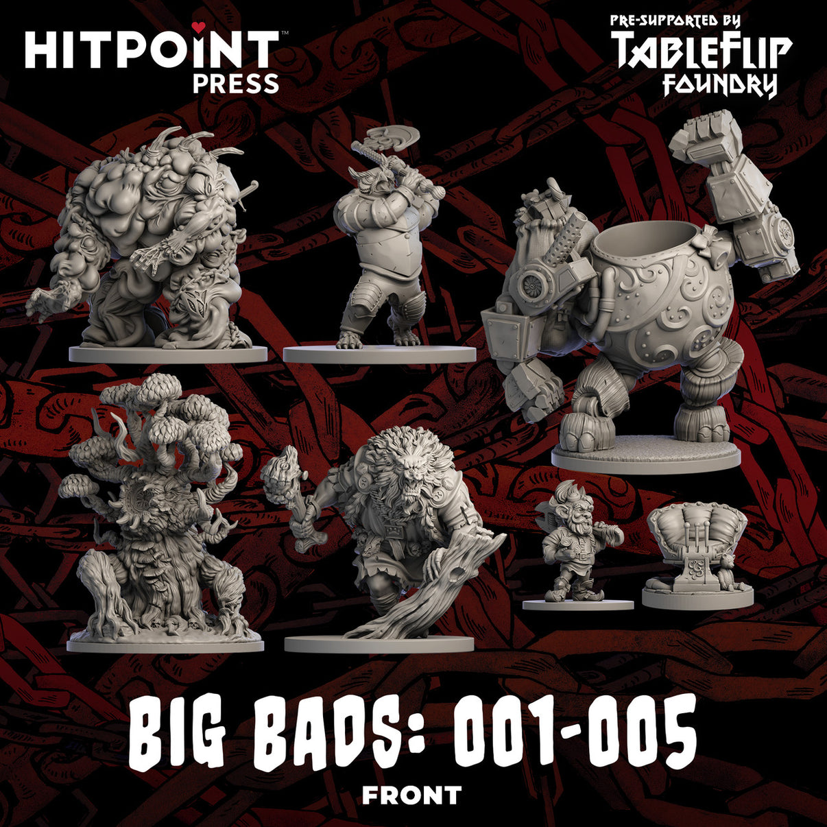 A bundle of five miniature STLs for 3D printing! Includes the STL files for Big Bads 1 to 5.