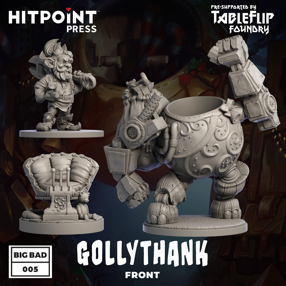 STL files of Gollythank, suitable for 3D printing! Includes a seat insert for the Holly Jolly Apparatus (which can also fit many minis with a 1" base)!